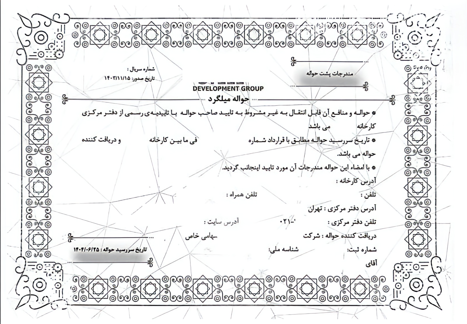 خرید و فروش حواله میلگرد، مناسب افرادی مانند پیمانکاران و انبوه‌سازان است که با پروژه‌های زیادی سر و کار دارند و از این طریق می‌توانند تا حد زیادی هزینه خرید میلگرد را مدیریت کنند. در ادامه یک نمونه‌ حواله میلگرد را مشاهده می‌کنید که در آن به مواردی مانند نوع میلگرد، کد رهگیری، محل تحویل و نام عرضه کننده اشاره شده است.