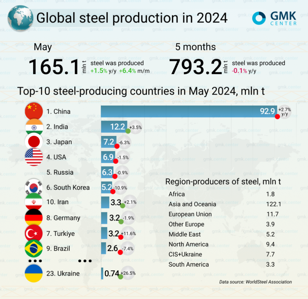 جدول رتبه بندی نهایی تولید فولاد در جهان 2024